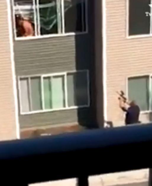 Video do tài khoản Jessy đăng tải lên Twitter, nói đã chứng kiến toàn bộ vụ việc ở căn hộ đối diện. “Người đàn ông đó khỏa thân và có hành động tự sướng, nhoài người ra khỏi cửa sổ nên cảnh sát đến can thiệp và bắn đạn súng sơn”.