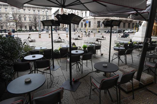 Một nhà hàng vắng khách ở quảng trường Piazza della Scala ở Milan.