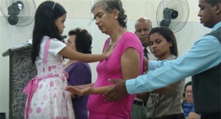 Hai lần một tuần, người dân từ khắp Brazil đến xếp hàng tại nhà thờ để có cơ hội chạm vào đôi tay chữa bệnh của cô bé.