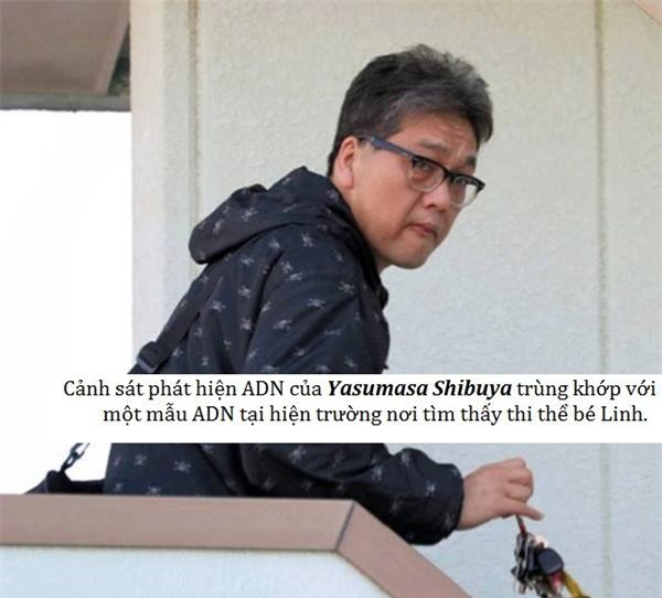 Ngày 14/4, phía cảnh sát vừa bắt giữ nghi phạm trong vụ sát hại bé gái người Việt do phát hiện mẫu ADN của người đàn ông này ở hiện trường.. Được biết, người đàn ông này có tên Yasumasa Shibuya - 46 tuổi (sống tại Matsudo, tỉnh Chiba). Nghi phạm đang làm việc tại một công ty cho thuê bất động sản. Shibutani Shibuya sống cách nhà nạn nhân khoảng 300 mét.