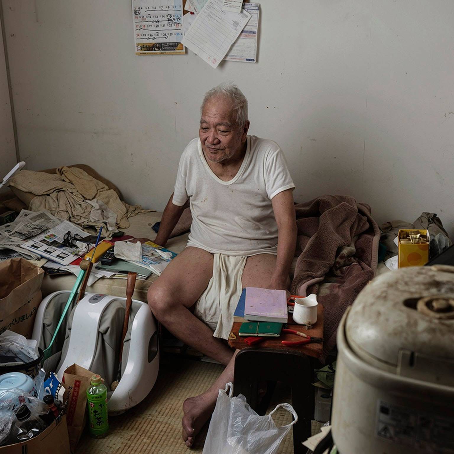 Ông Kinoshita, 83 tuổi, sống một mình trong căn hộ ở Tokiwadaira. Không có người chăm sóc, căn hộ của ông tràn ngập rác với đống quần áo cũ, sách, báo, hộp đựng thức ăn... Vì sức khỏe suy giảm với đôi chân ngày một yếu đi, ông chỉ rời căn hộ của mình một tuần một lần.