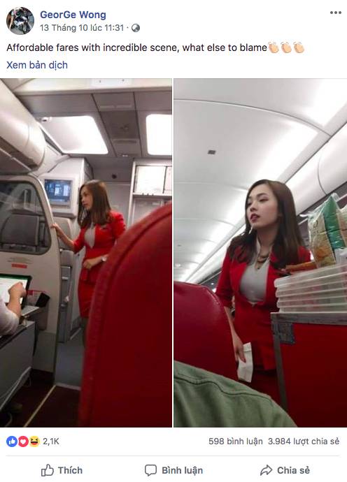 Gần đây, một tài khoản faceboook đã đăng tải hình ảnh một nữ tiếp viên xinh đẹp mà anh ta tình cờ gặp trên chuyến bay của hãng hàng không AirAsia. Nam hành khách khách còn cho biết: "Giá vé phải chăng còn thêm cả cảnh tượng khó tin như thế này, còn điều gì để chê trách [về hãng AirAsia] nữa chứ". Bài viết đến nay thu hút được hơn 2000 lượt thích và gần 4000 lượt chia sẻ của các netizen, khiến cho nữ tiếp viên hàng không nhanh chóng nổi tiếng trên MXH chỉ sau một đêm.