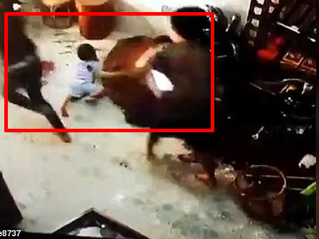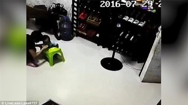 Video ghi lại hình ảnh một người phụ nữ đang cho một bé trai