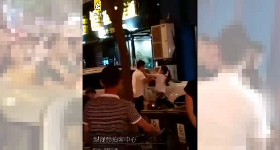 Theo clip ghi lại, sau khi bắt quả tang chồng mình đang hẹn hò với nhân tình, người vợ (áo trắng) đã vô cùng tức giận và cãi nhau với chồng.