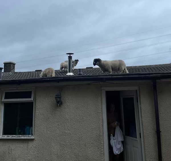 Một chủ nhà ở Anh đã mô tả khoảnh khắc hài hước khi cô phát hiện một đàn cừu đi lại trên mái nhà của mình.