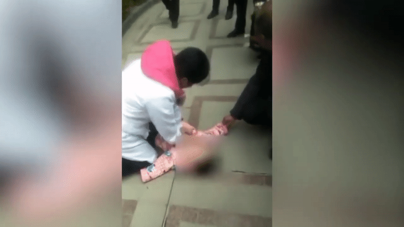Lúc đó, người chồng cố gắng ngăn cản hành động nông nổi của vợ. nhưng vô tình đụng trúng người con đang sợ hãi đứng bên cạnh. Va chạm khiến đứa bé ngã khỏi lan can, rơi xuống mặt đất từ tầng 14.