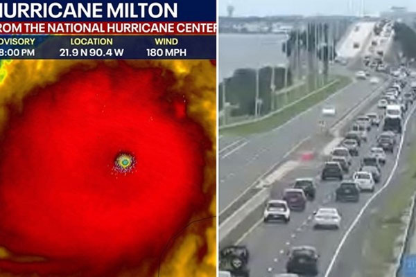 Siêu bão Milton đang di chuyển hướng về bang Florida (Mỹ), nơi đã bị tàn phá bởi bão Helene chưa đầy 2 tuần trước, khiến hơn 220 người thiệt mạng và còn hàng trăm người mất tích. Vì vậy, người dân Florida đã được đề nghị chuẩn bị sẵn sàng cho cuộc sơ tán có thể là lớn nhất kể từ hồi bão Irma năm 2017, theo trang Independent.