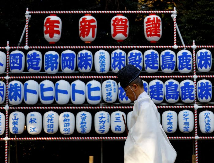 Các đạo sĩ Thần đạo Nhật Bản tham gia nghi lễ Oharae thường niên ở đền Minh Trị, Tokyo, Nhật Bản. Ảnh: Reuters.