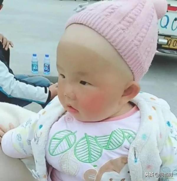 Làn da trắng sứ của em bé đã bị cháy nắng, khác hẳn so với phần được đội mũ.