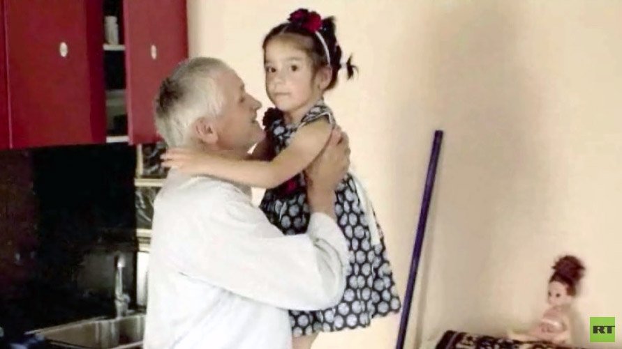 Cô em Fatima không rời ông nội nửa bước. Ảnh: RT