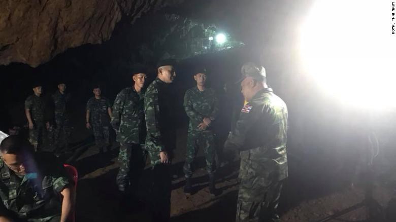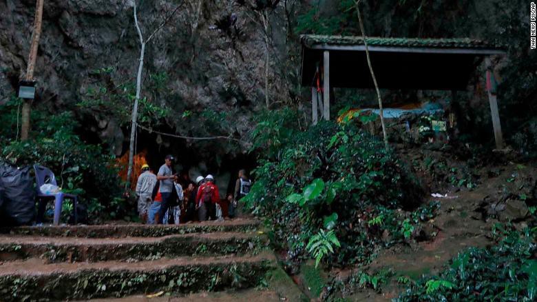 Nước mưa dâng cao chặn đường ra, khiến cho nhóm 13 người bị mắc kẹt bên trong mạng lưới hang động, một quan chức điều hành các công viên quốc gia của Thái Lan nói với CNN. Lực lượng cứu hộ tạm dừng tìm kiếm vào buổi tối vì lũ lụt đã xảy ra.