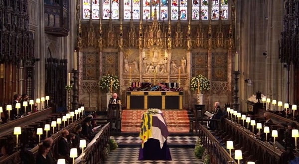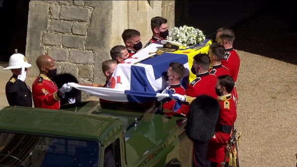 Vào chiều 17/4 (giờ địa phương), tang lễ của Hoàng tế Philip đã được cử hành trang trọng theo đúng tâm nguyện của người đã khuất. Các thành viên hoàng gia và những người tham dự đều có mặt từ rất sớm. Lễ tang bắt đầu khi chiếc Land Rover được thiết kế riêng chở linh cữu Hoàng tế Philip di chuyển tới Nhà nguyện St. George với sự tháp tùng của các lực lượng quân đội và các thành viên hoàng gia Anh.