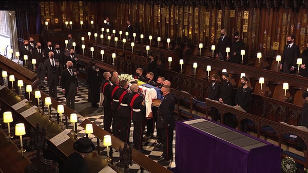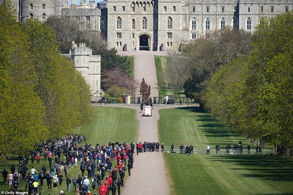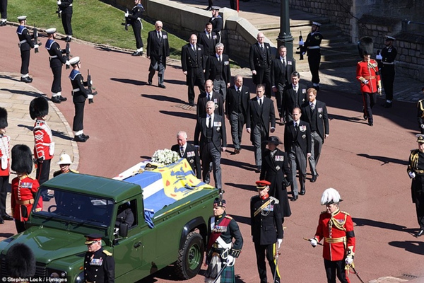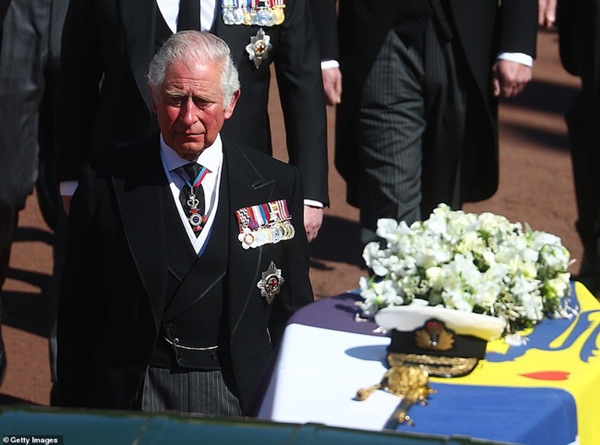 Thái tử Charles dẫn đầu đoàn đưa tang Hoàng tế Philip tới Nhà nguyện St George trong Lâu đài Windsor. Ông đã bật khóc khi đi sau quan tài của cha mình. Trước đó, Thái tử Charles cho biết ông và gia đình nhớ cha "rất nhiều" và cũng rất cảm kích trước sự chia sẻ của mọi người.