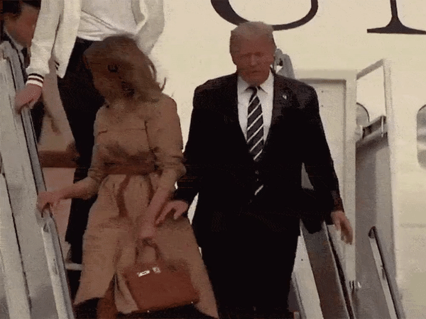 Cụ thể, khi chuẩn bị bước lên chuyên cơ Không lực Một để rời đi, bà Melania đã "với tay ra và chủ động nắm lấy tay chồng, cùng bước đi vô cùng tình cảm và thân mật trước sự chứng kiến của rất nhiều người.