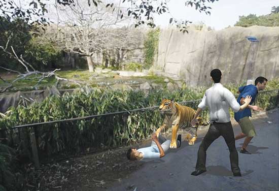 Hình vẽ miêu tả lại vụ tấn công đáng sợ của con hổ Siberia tại vườn thú San Francisco.