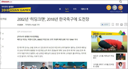 Hãng thông tấn Chosun Hàn Quốc đưa tin: "Hiddink Hàn Quốc (Park Hang-seo) thách thức đội bóng quê nhà".