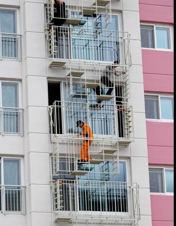 Ngoài ra, theo Đạo luật dịch vụ cứu hỏa của Hàn Quốc, lối thoát hiểm phải được lắp đặt trong tất cả các hộ gia đình từ tầng 10 trở xuống để kịp sơ tán trong trường hợp hỏa hoạn.