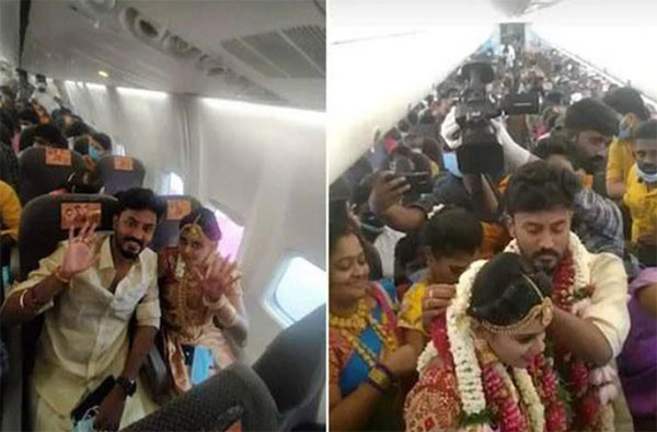 Cặp đôi ở bang Tamil Nadu (Ấn Độ) Rakesh và Dakshina đã thuê một chuyến bay riêng của SpiceJet từ Madurai đến Bangalore trong vòng 2 giờ đồng hồ vào ngày 23/5, cùng với hơn 160 khách mời để làm đám cưới trên bầu trời. Cặp đôi đã chờ tới khi máy bay đi qua đền thờ Madurai Meenakshi Amman để cầu phúc cho việc kết hôn.