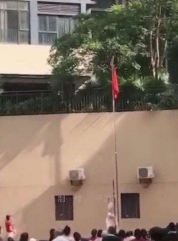 Cô gái đang nhảy múa quanh chiếc cột mà phía trên có gắn quốc kỳ Trung Quốc. Ảnh: Shanghaiist
