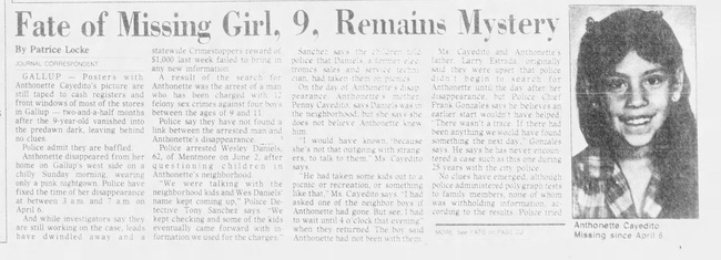 Án vụ mất tích của cô bé Anthonette, tên đầy đủ là Anthonette Cayedito, cho đến hiện tại vẫn là một trong những câu trả lời bí ẩn mà cơ quan cảnh sát thành phố Gallup thuộc quận McKinley, bang New Mexico (Mỹ) chưa thể tìm ra lời giải đáp.