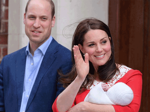 Vào lúc 11h, ngày 23/4, công nương Kate hạ sinh hoàng tử bé, người con thứ 3 của cặp đôi sau nhiều ngày mong chờ. Chỉ 7 tiếng đồng hồ sau khi sinh, công nương Kate xuất hiện rạng rỡ cùng chồng, trên tay cô là hoàng tử bé được cuộn tròn trong chiếc khăn ấm áp.