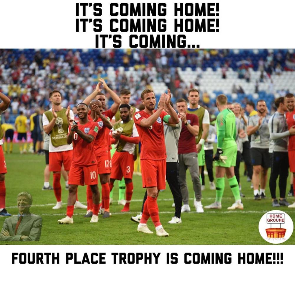 Trận đấu tranh hạng ba kết thúc khá nhẹ nhàng cùng kết quả không có gì phải bàn cãi. Song đội tuyển Anh vẫn trở thành tâm điểm bị chế ảnh vì câu khẩu hiệu "It's coming home".