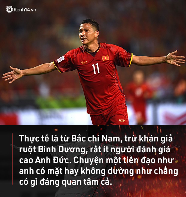 Trong tất cả các lần tập trung đội tuyển, cái tên Anh Đức hầu như luôn được điền vào. Các nhà tuyển trạch, với chức trách của mình, không thể bỏ sót một chân sút nội mùa nào cũng nằm trong Top ghi bàn cho Bình Dương. Nhưng thành tích ở CLB với ghi nhận ở đội tuyển là hai câu chuyện khác nhau (ngay lúc này, tiền đạo Vua phá lưới V.League 2018 Tiến Linh vẫn chưa thể thuyết phục được HLV Park Hang-seo), và Anh Đức lên tuyển đơn thuần chỉ là để… đủ mâm.