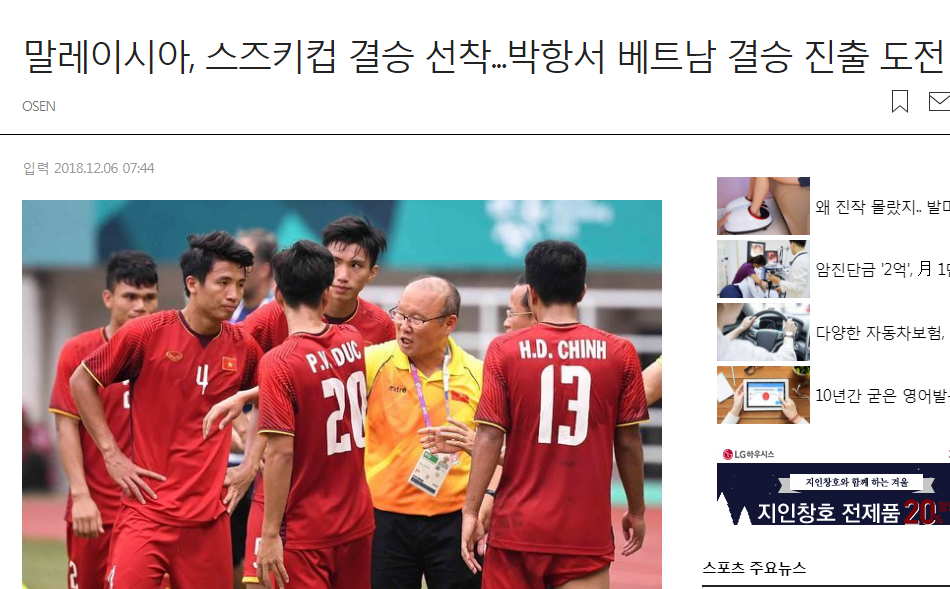 "Đội tuyển Việt Nam không được phép lỏng chân và cần thi đấu với tinh thần như ở trận lượt đi. Nếu làm được điều này, khả năng thầy trò HLV Park Hang Seo lọt đến trận chung kết và tạo ra một cơn bão mới tại Việt Nam là không nhỏ", tờ Joins của Hàn Quốc kết luận.