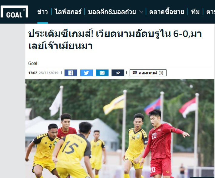 Tờ Goal phiên bản tiếng Thái cũng mô tả: "Khởi đầu hoàn hảo, Việt Nam đè bẹp Brunei 6-0 trong khi Malaysia bị Myanmar cầm châm".
