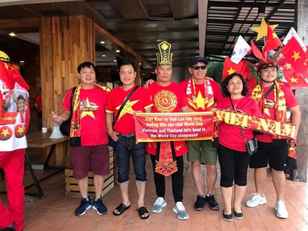 Trên trang cá nhân, cựu tiền đạo đội tuyển Việt Nam chia sẻ những hình ảnh anh trong trang phục áo đỏ sao vàng và cùng bạn bè có mặt ở Buriram để ủng hộ thầy trò Park Hang-seo trong cuộc thư hùng với Thái Lan. Ảnh: FBNV.