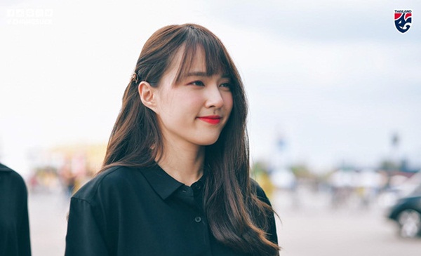 Nhóm nhạc nữ nổi tiếng BNK48 Thái Lan chụp ảnh bên ngoài sân vận động Chang Arena. Những cô gái xinh đẹp của xứ sở chùa vàng thu hút sự chú ý của rất nhiều phóng viên báo chí. Ảnh: FAT.