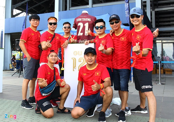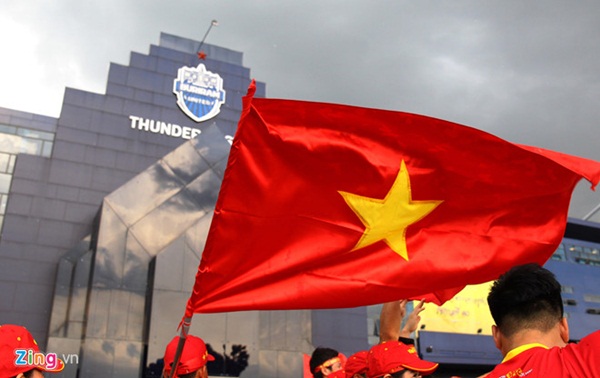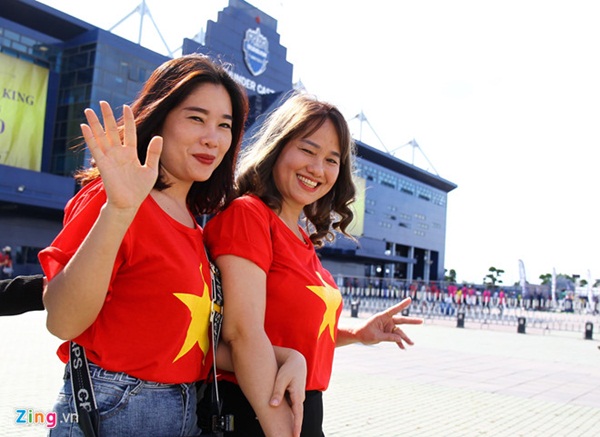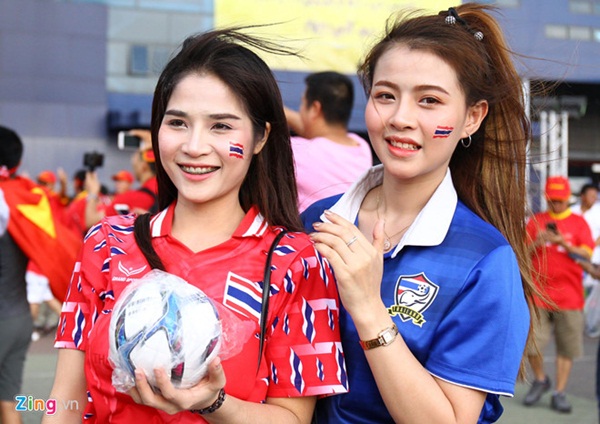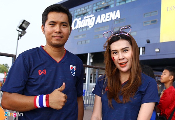 Nhiều tốp CĐV khoác áo cờ đỏ sao vàng đã có mặt bên ngoài sân Chang Arena từ rất sớm để tận hưởng bầu không khí trước cuộc thư hùng của hai đội bóng hàng đầu Đông Nam Á. CĐV nước ngoài phải mua vé với giá chung là 500 baht (khoảng 370.000 đồng).