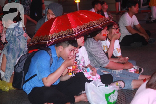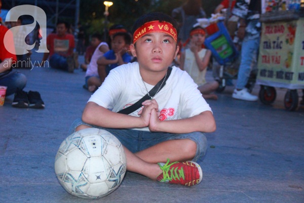 Tại phố đi bộ Nguyễn Huệ (quận 1, TP.HCM), rất nhiều cổ động viên đã dần tập trung về trước các màn hình lớn. Nhiều CĐV háo hức mang áo cờ đỏ sao vàng, băng rôn cổ vũ xuống phố từ sớm để chờ giây phút bóng lăn.