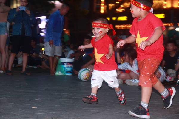 Phố đi bộ Nguyễn Huệ như bùng nổ cùng chiến thắng của thầy trò HLV Park Hang-seo sau pha ghi bàn ở phút thi đấu cuối cùng. Một lần nữa, tiền đạo kỳ cựu Nguyễn Anh Đức tỏa sáng đúng lúc đưa đội tuyển Việt Nam lọt vào chung kết King's Cup 2019.