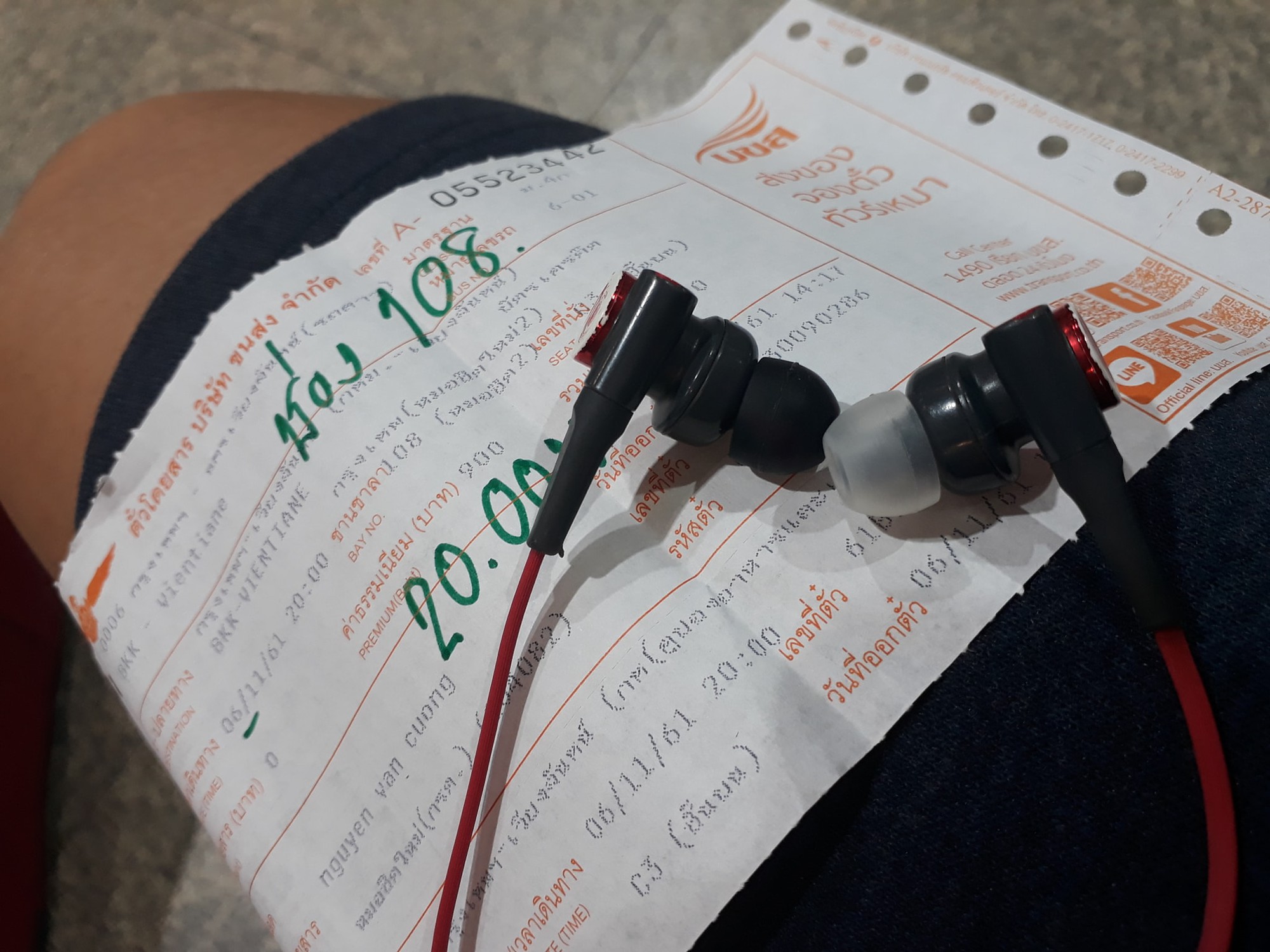 Vé lên xe khách và chiếc tai nghe được cho là của Nguyễn Vân Cương. Ảnh: Facebook Nguyễn Vân Cương.