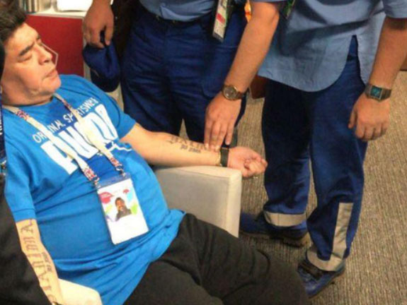 Mỗi trận đấu góp mặt, Maradona đều ngồi ở khán đài VIP, có vệ sĩ, bác sĩ bên cạnh và được phục vụ rượu vang trắng, đồ ăn hạng sang. Nếu FIFA “tuýt còi”, Maradona sẽ chỉ là cổ động viên bình thường ở phần còn lại của World Cup 2018.