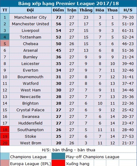 Đối với Man Utd, đội bóng này không còn duy trì được khoảng cách năm điểm với nhóm bám đuổi. Ở trận đấu muộn, Liverpool đã đánh bại Southampton với tỉ số 2-0, qua đó rút ngắn khoảng cách với MU xuống còn hai điểm. Chút lo lắng cho Mourinho khi đội bóng này thua trận thứ hai liên tiếp trên sân khách. Nếu không sớm cải thiện được phong độ, Man Utd chưa biết sẽ trôi về đâu vào cuối mùa.