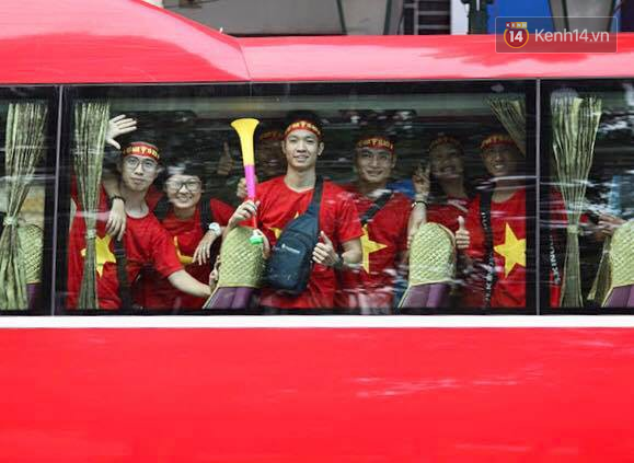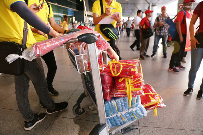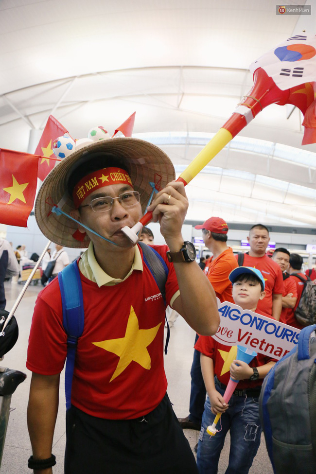 Hàng trăm CĐV mang trên mình chiếc áo cờ đỏ sao vàng và băng rôn nổi bật tại sân bay làm cho không khí trước giờ bóng lăn càng sôi động hơn. Cờ và băng rôn cũng được chuẩn bị đầy đủ, sẵn sàng để "cháy" hết mình cùng đội bóng con cưng.