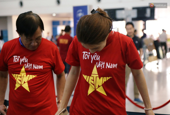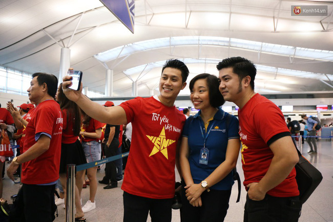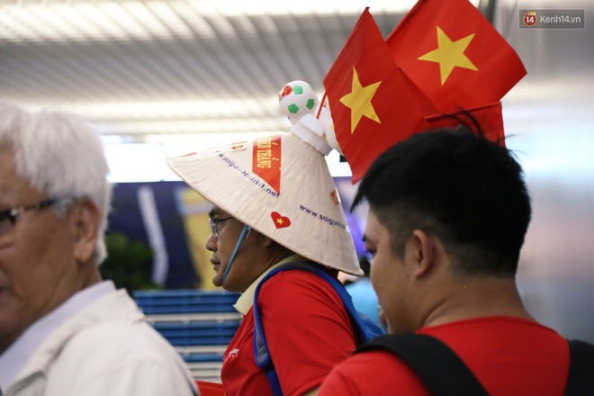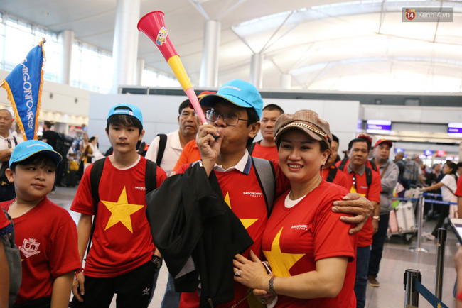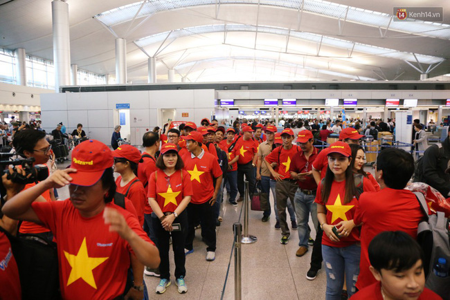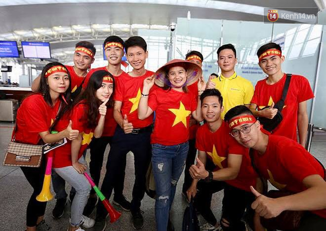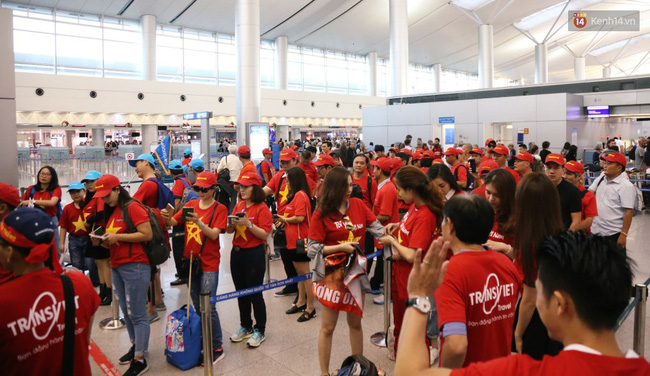 Các CĐV đến từ khá sớm để kịp chụp hình lưu niệm, tạo ra không khí khá cuồng nhiệt tại khu vực nhà chờ sân bay. Những nụ cười và ánh mắt vui vẻ của hàng trăm CĐV với hy vọng "tiếp lửa" cho đội tuyển Việt Nam thi đấu hết mình, mang vinh quang về cho Tổ quốc.
