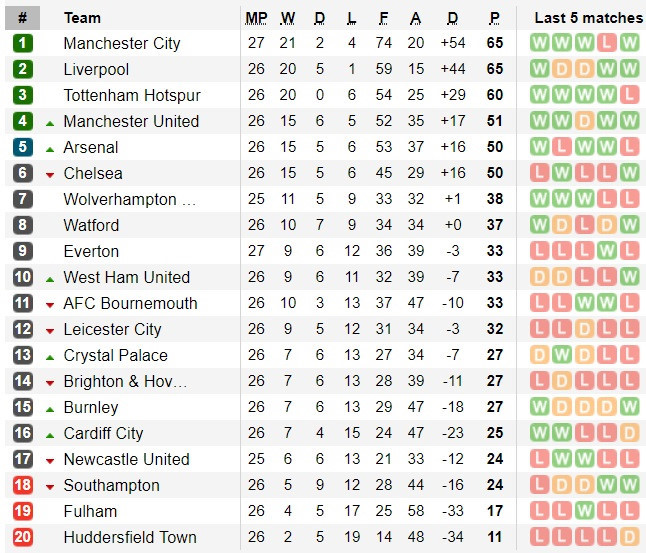 3 điểm có được trên sân nhà, Man City trở lại với vị trí dẫn đầu BXH. Trong khi đó, Chelsea đang từ vị trí thứ tư tụt xuống thứ 6, xếp sau cả Man Utd và Arsenal.