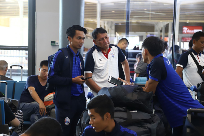 Ngay khi ra khỏi cổng xuất nhập cảnh, các cầu thủ và ban huấn luyện của Campuchia đã nhanh chóng rời khỏi sân bay. Họ tỏ ra khá khó chịu khi bị giới truyền thông Việt Nam tiếp cận. Được biết, mọi vấn đề của đội tuyển Campuchia đều được trợ lý HLV Felix Dalmas kiểm soát vô cùng chặt chẽ và nghiêm ngặt, bao gồm cả việc trả lời phỏng vấn. Vị chiến lược gia 30 tuổi cũng yêu cầu các phóng viên Việt Nam hạn chế làm phiền các cầu thủ bởi họ đang khá mệt sau chuyến bay.