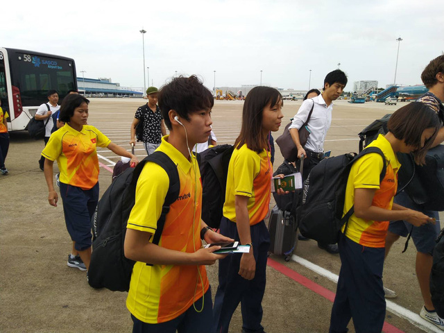 Đội tuyển nữ Việt Nam làm thủ tục ở sân bay Nội Bài