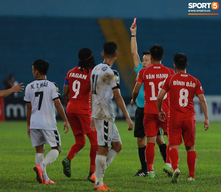 Trước đó, Hữu Phúc của Hải Phòng đã phải nhận chiếc thẻ đỏ đầu tiên của trận đấu.