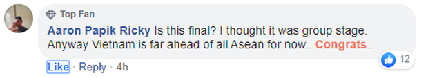 CĐV này cũng đồng tình: "Việt Nam đã ở đẳng cấp vượt xa tầm khu vực mất rồi."