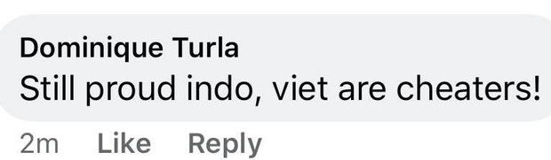 Một fan Indonesia thì bình luận: "Tôi vẫn tự hào về các cầu thủ Indo, còn Việt Nam đã chơi không đẹp!"