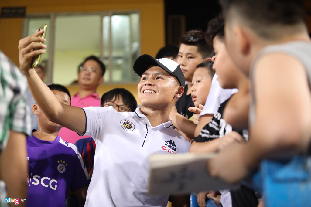 Về phần Quang Hải, anh không ra sân phút nào. Quang Hải ngồi trên khán đài là cơ hội cho các em nhỏ không phải đợi hết trận vẫn có chữ ký hay chụp ảnh cùng thần tượng.