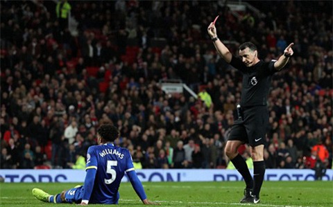 Trung vệ Willimas nhận thẻ đỏ sau tình huống chơi bóng bằng tay trong vòng cấm