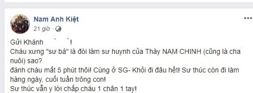 Võ sư Nam Nguyên Khánh đáp trả võ sư Nam Anh Kiệt trên mạng xã hội.