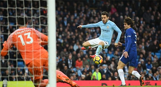 thẳng vào người Cesar Azpilicueta, tạo điều kiện để David Silva cướp