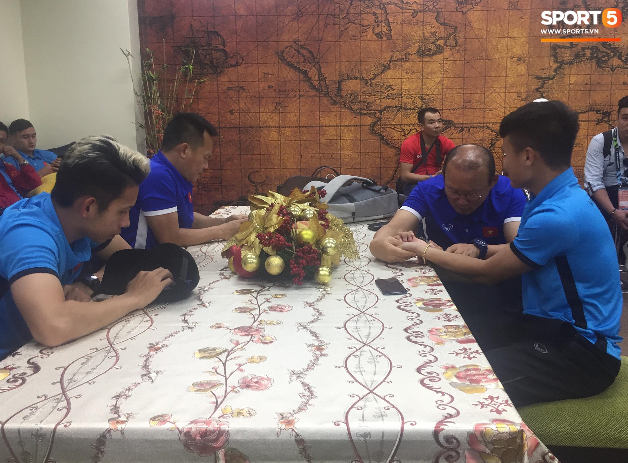 Sau 3,5 tiếng bay, thầy trò HLV Park Hang Seo đã có mặt tại thành phố Bacolod (Philippines). Tuy nhiên, do trục trặc về thủ tục, toàn đội phải ngồi chờ trên máy bay 2 giờ đồng hồ mà chưa được nhập cảnh.